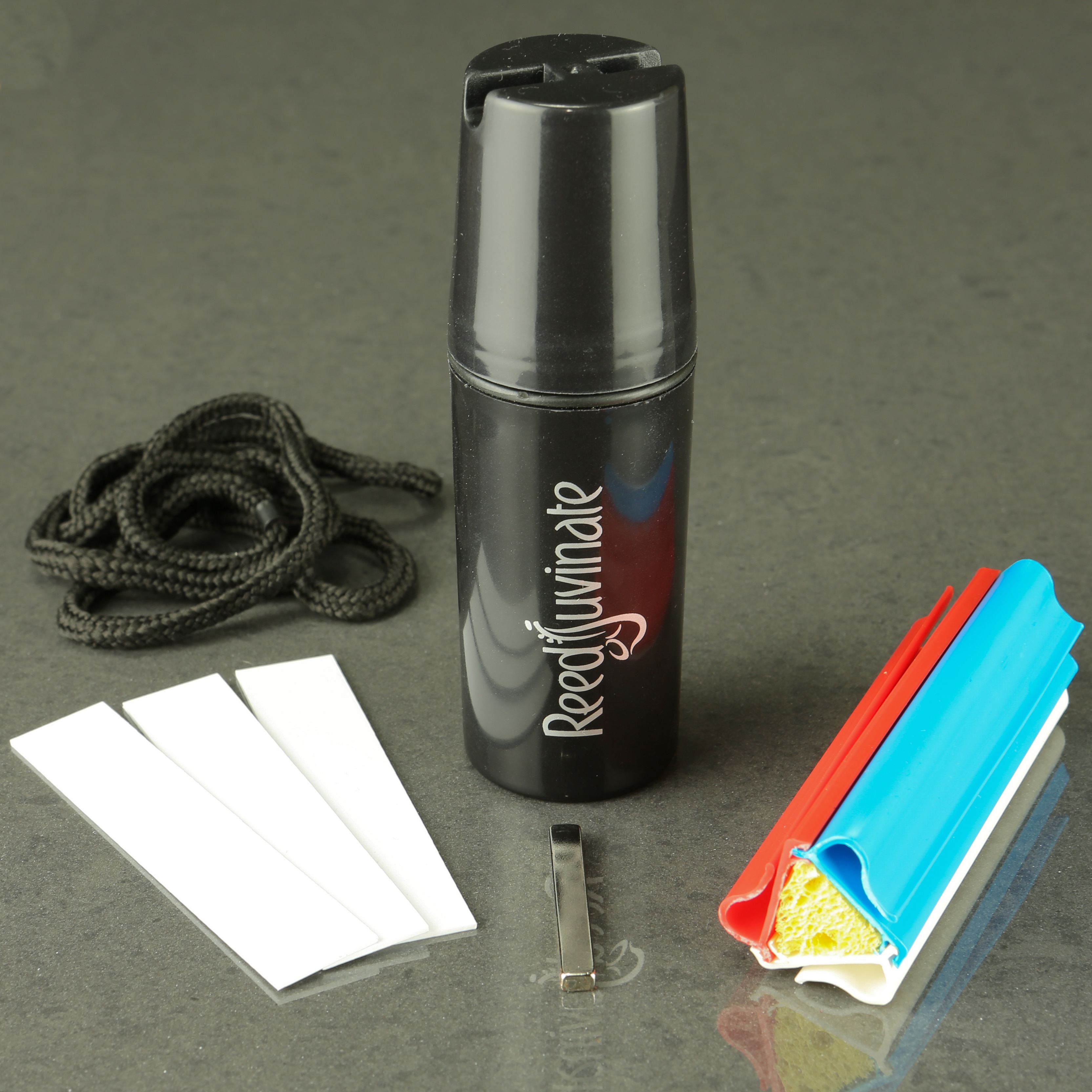 ReedJuvinate is a unique woodwind reed preservation system that prolongs the life of your saxophone and clarinet reeds, eliminates microbial contamination of your reed, and maintains the perfect moisture level so your reeds are instantly ready to play beautifully. The reeds are at the perfect moisture level and kept sterile by a humidifying them with evaporated Listerine.